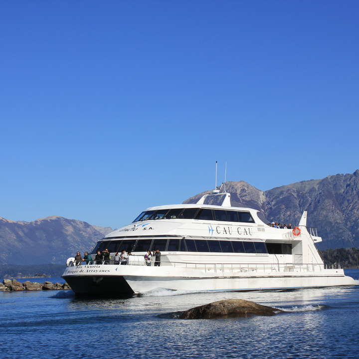 Comenzamos con Circuito Chico, un paseo de increíbles vistas panorámicas. Bordeando, en gran parte de su recorrido, al magnífico lago Nahuel Huapi. Al llegar a la base del C° Campanario se puede optar por tomar una aerosilla hacia la cumbre del mismo, desde donde se aprecia una de las vistas más bonitas de la región. Al descenso, continúa el viaje con dirección a la zona del lago Moreno y Punto Panorámico, en el cual se destaca el gran hotel LLAO-LLAO y la capilla S. Eduardo, siendo éste, el punto más alejado del trayecto. Una vez en Puerto Pañuelo,nuestro guía te indicara donde abordar el Catamarán Cau Cau para realizar la excursión a Isla Victoria y Bosque de Arrayanes. La misma comienza con una navegación de 30 minutos por las azules aguas del lago Nahuel Huapi llegando a **Puerto Anchorena**, ubicado en la zona central de Isla Victoria y centro de servicios de la misma. Existen distintas opciones de caminatas por senderos demarcados. Allí se podrá realizar una visita recorriendo el vivero de coníferas y otras especies, miradores naturales y senderos que permiten apreciar la magnífica belleza del lugar. Uno de estos senderos conduce a Playa del Toro, donde se pueden apreciar pinturas rupestres y visitar una espléndida playa de arena volcánica. Dichas caminatas son acompañadas por un guia del Parque Nacional de acuerdo a las condiciones climáticas de la época en que se realice la visita. Continuando con la navegación se arriba a la **península de Quetrihué** en donde se puede apreciar la magnificencia del paisaje del "único Bosque de Arrayanes del mundo". Recorriendo un sendero entablonado se pueden apreciar estos ejemplares centenarios. El Arrayán es una planta catalogada por la botánica como un arbusto que solamente en ese lugar toma el porte del árbol. Tiene un color canela intenso con una corteza muy fina, la cual al desprenderse deja al mismo con unas manchas blancas que le dan características únicas.Cada rincón de la isla, con sus maravillosos paisajes y su impactante ambiente natural, convierten a este paseo en una experiencia para disfrutar a pleno.